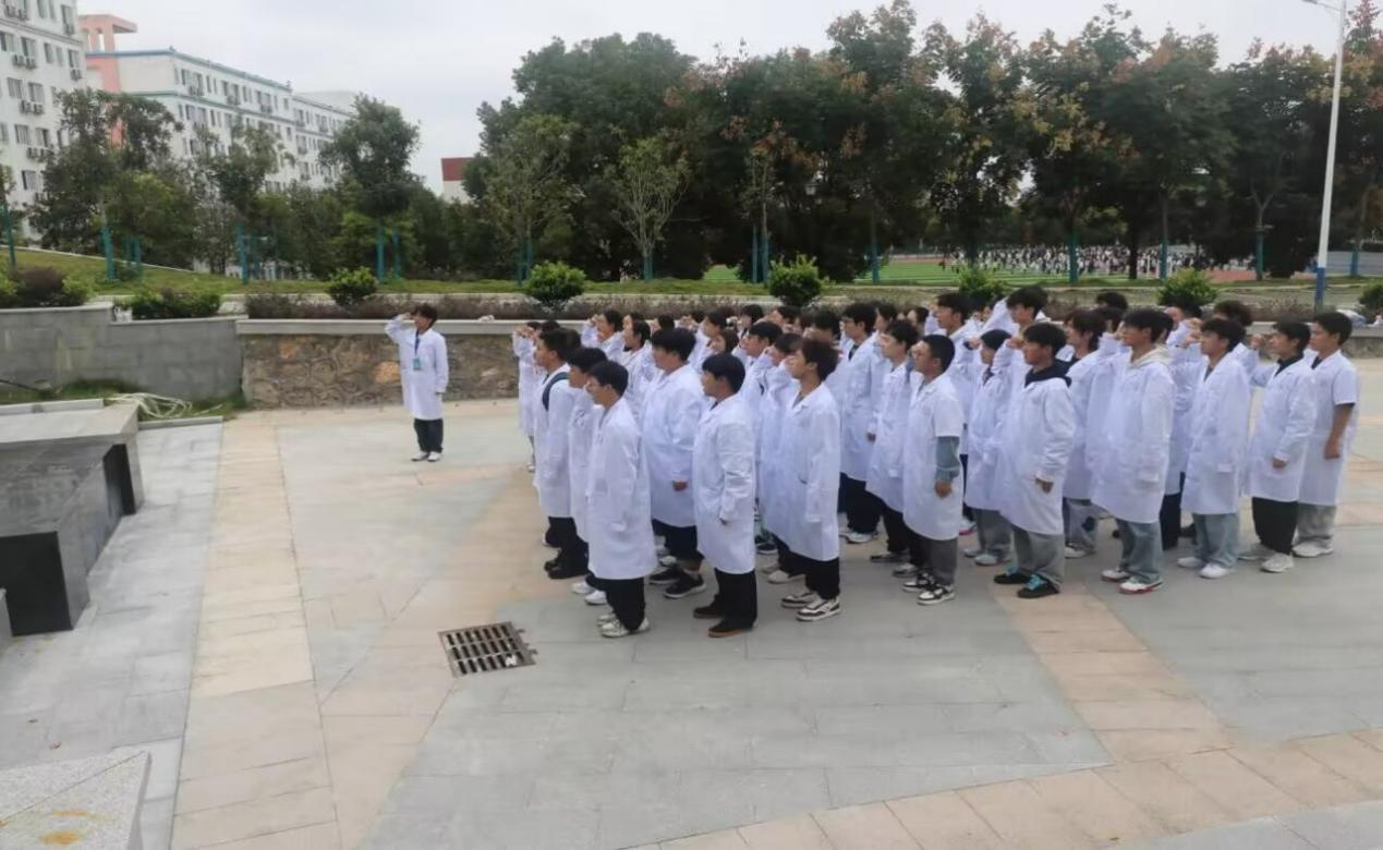 宣誓活动现场,同学们队列整齐,以班级为单位依次到雕像前。在领誓人的带领下,全体新生郑重举起右手,面向雕塑,庄严宣誓:“健康所系,性命相托……”誓言掷地有声,字字句句都承载着学子们投身医学与守护生命的赤诚信念,彰显出了他们对宝贵生命的深切尊重。